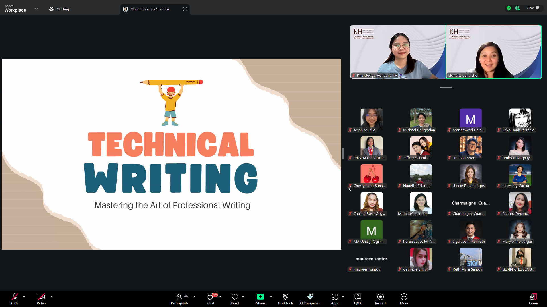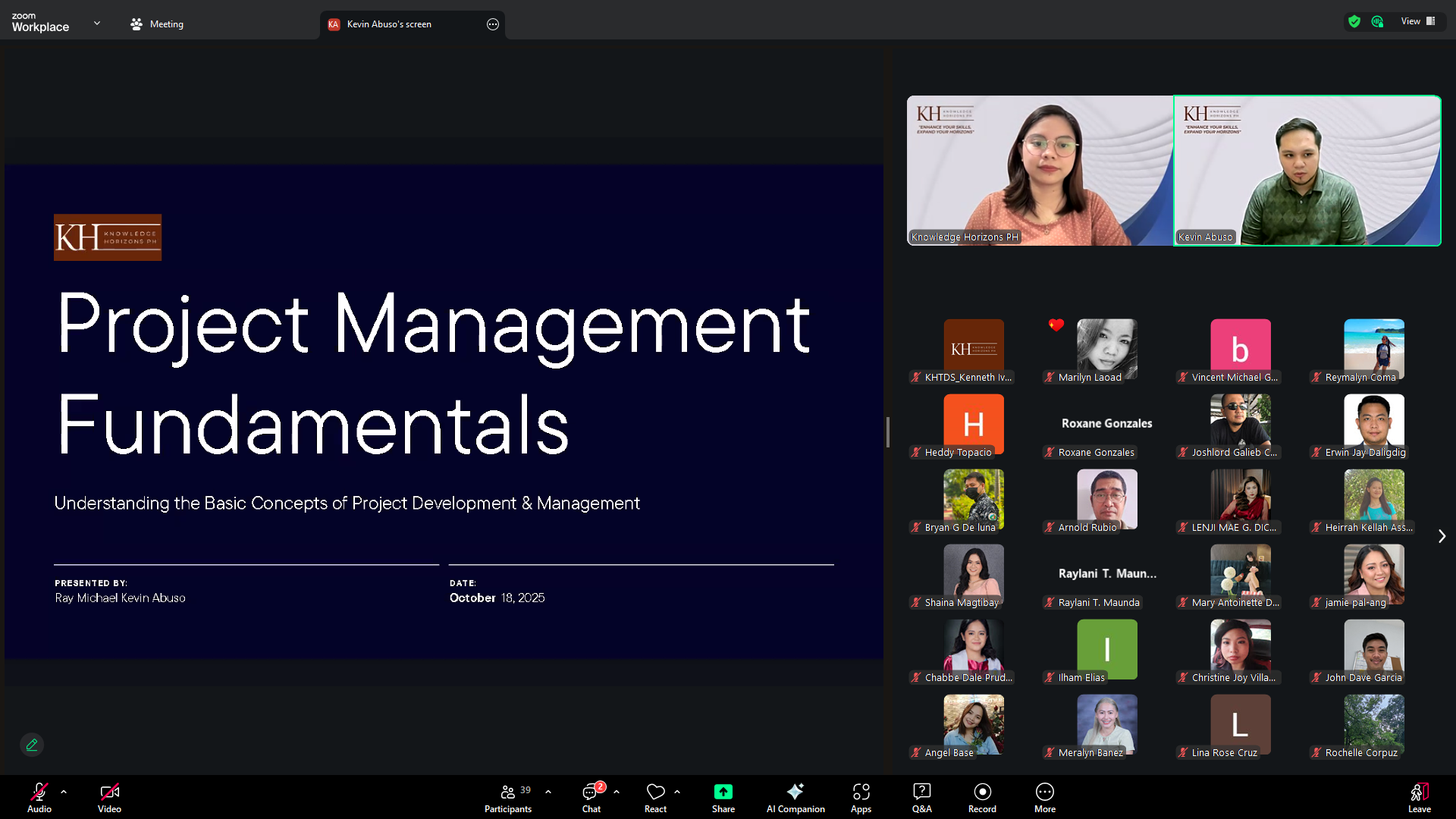 These screenshots showcase actual live training sessions facilitated by Knowledge Horizons PH.